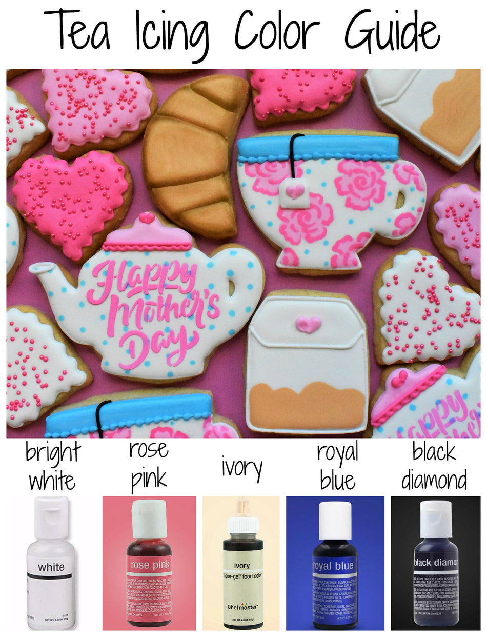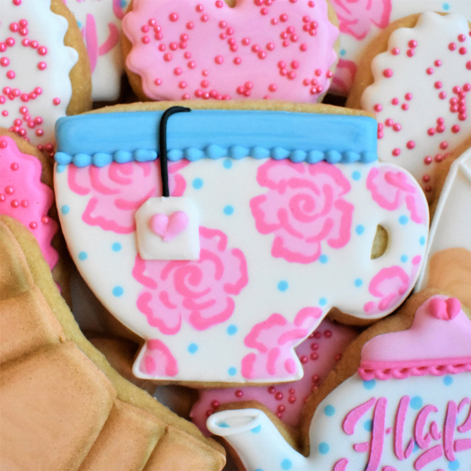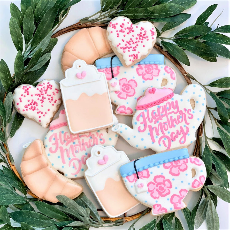 Pick what I needIt’s tea time for Mom! Throw her a yummy tea party for Mother’s Day with this tea cookie set! Learn how to make 5 cookies: The teacup, teapot, teabag, croissant, and the mini heart cookie.