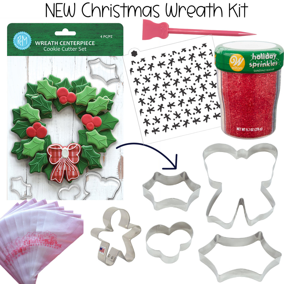Plus, the new Christmas Wreath Kit has the cutters, stencil, sugar, boo boo stick, and tipless bags to get started!