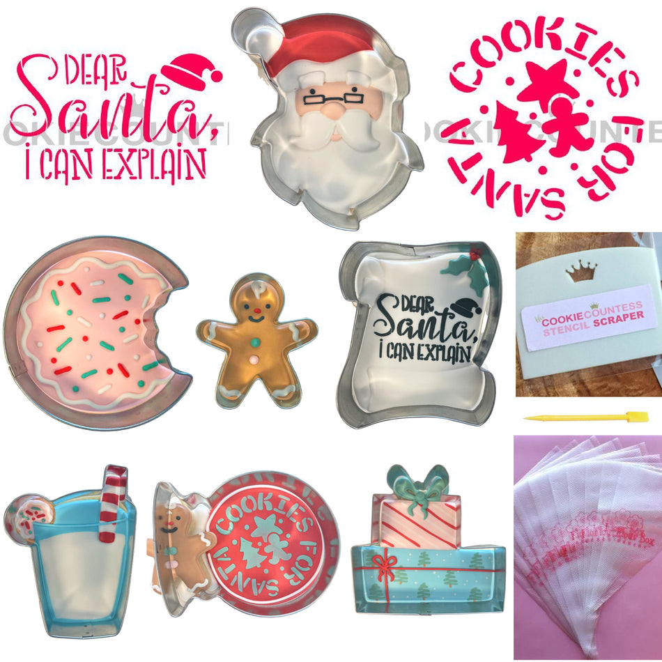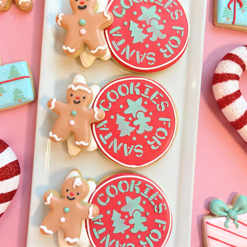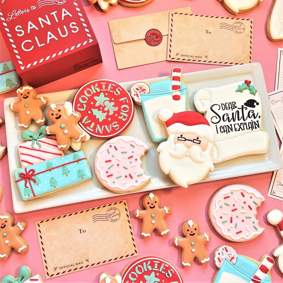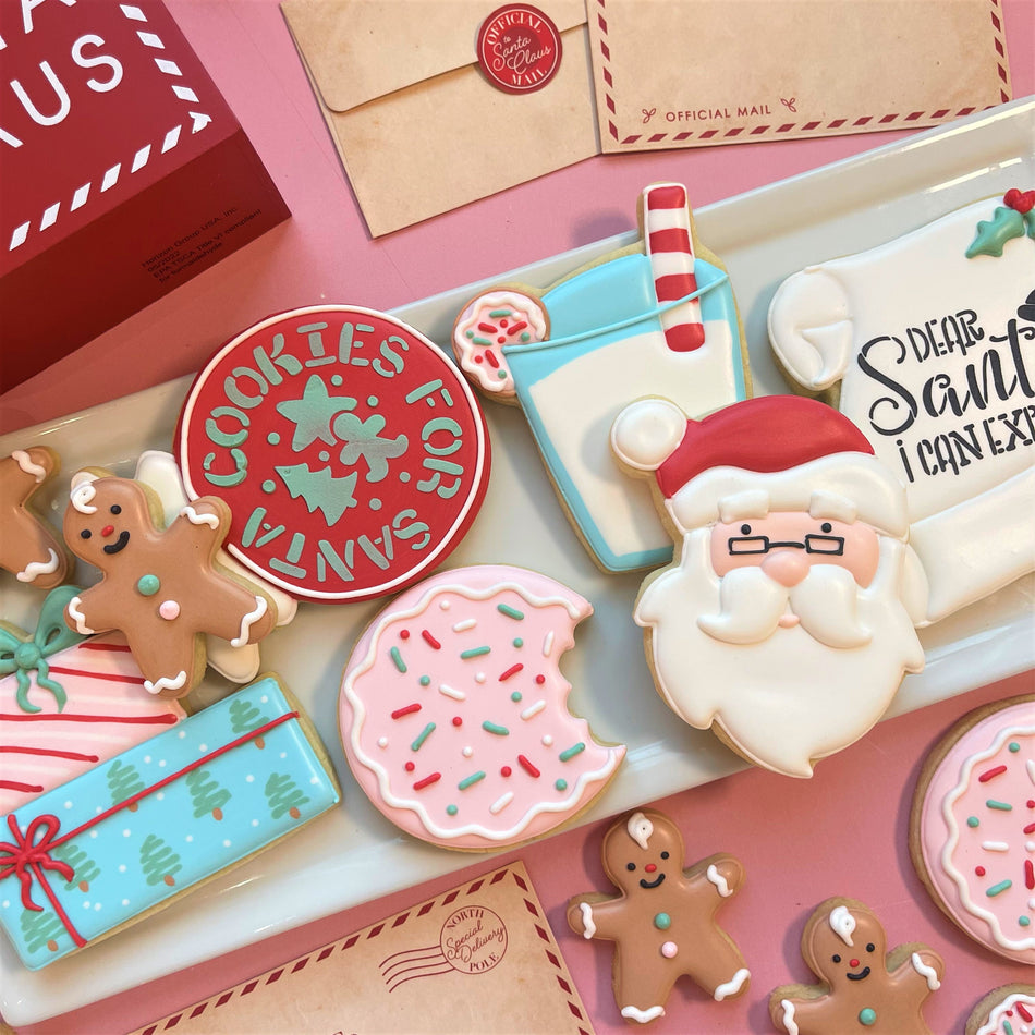 This is our last holiday kit of the year and it is my favorite! Dear Santa features 7 cookie designs and two really fun stencils. This set is just so charming. You'll have so much fun making and giving these cookies this holiday season...and leaving a few for Santa!!